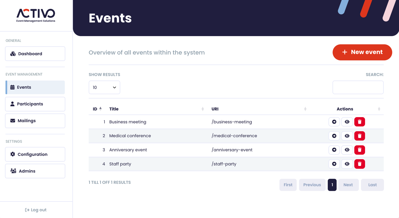 Activo NEXT, Activo’s self-service event platform. Full control over registration, communication and participant management — with Activo support when needed.